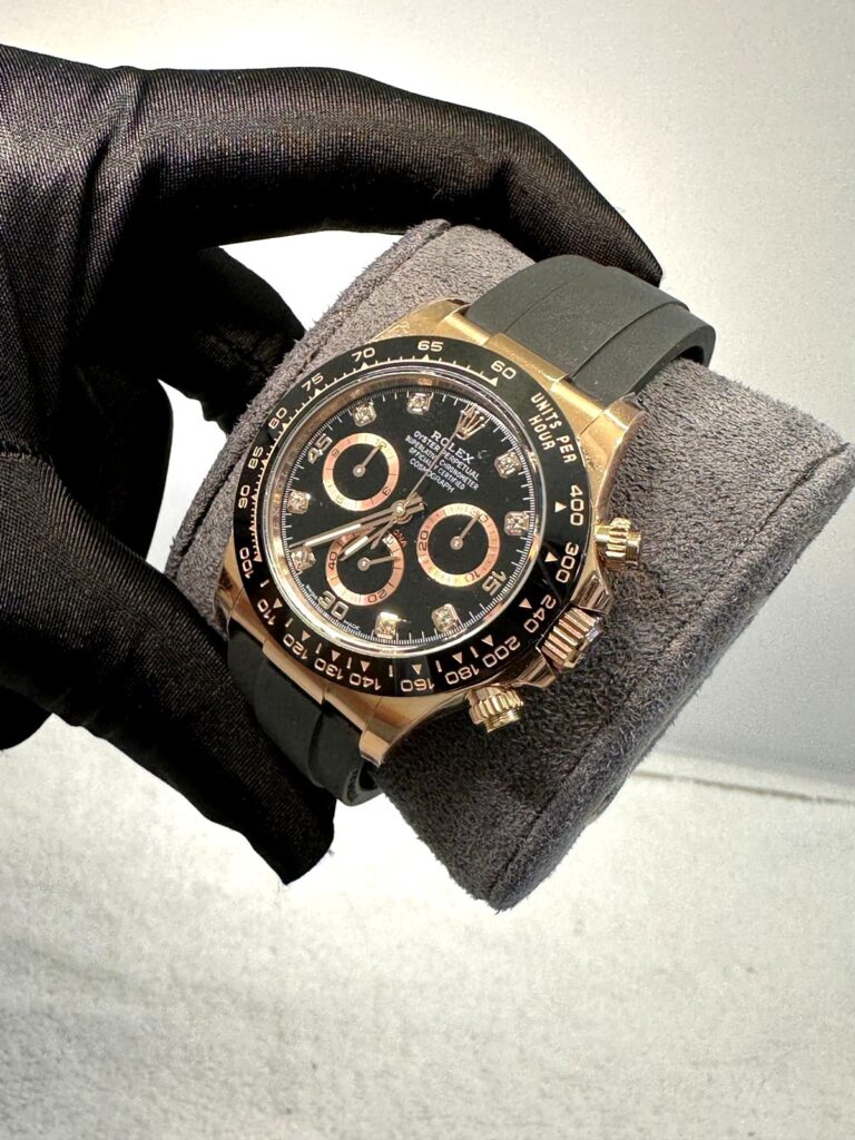 ROLEX DAYTONA BLACK DIAL WITH DIAMOND CERAMIC BEZEL WITH ROSE GOLD CASE SUPER CLONE WATCH