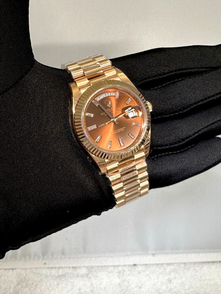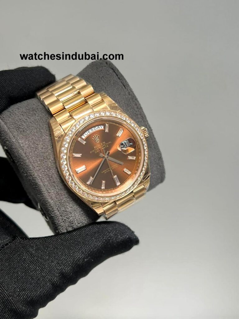 Rolex Day-Date 40mm brown Dial With Stone Stoned Bezel super clone watches in dubai