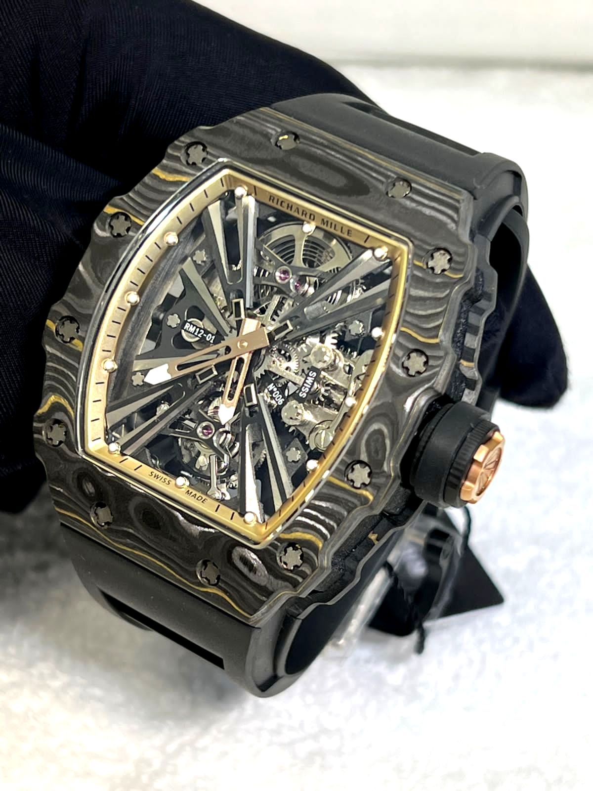 Richard Mille RM 12-01 black and gold bazel super clone replica watches in Dubai at watchesindubai.com