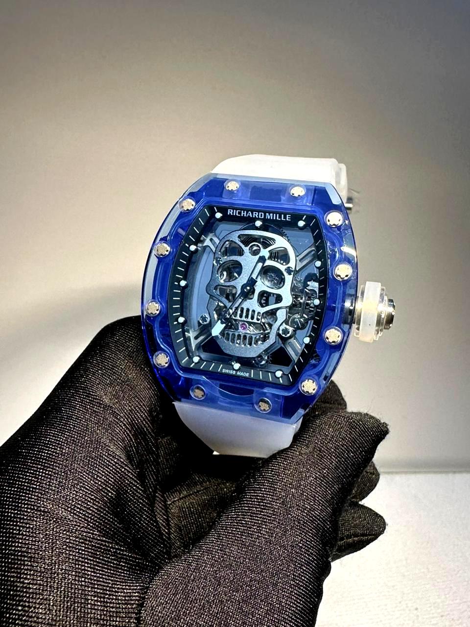 Be the first to review “Richard Mille RM SKELETON Tourbillon with blue Sapphire white strap super clone 1:1 watch”