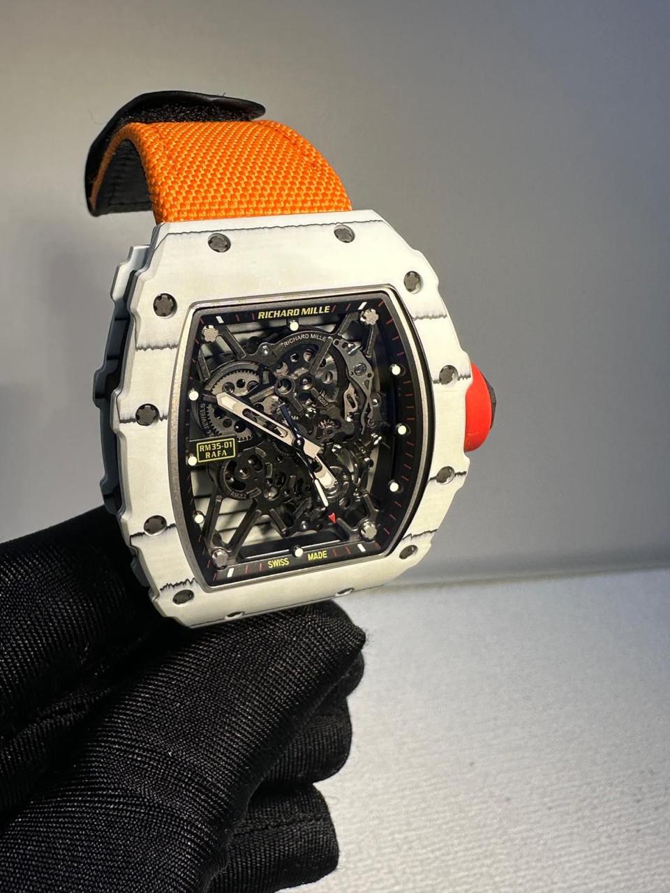 Richard Mille RM 35-01 rafa white bazel with orange velcro strap super clone replica watches in Dubai