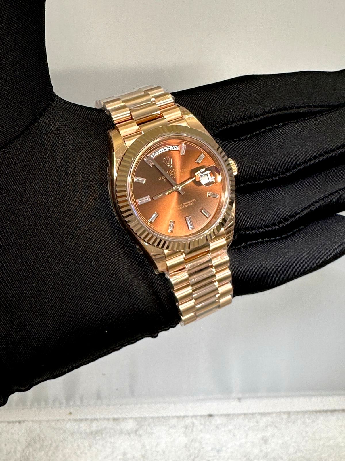 Rolex Day Date 40mm brown dial rose Gold super clone watches in dubai