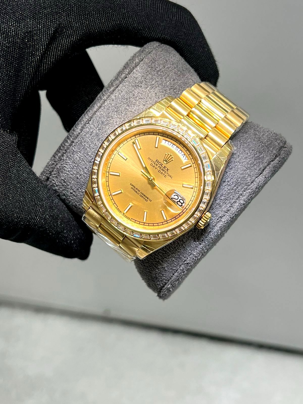 Rolex day date gold dial full gold bracelet with diamond super clone watch