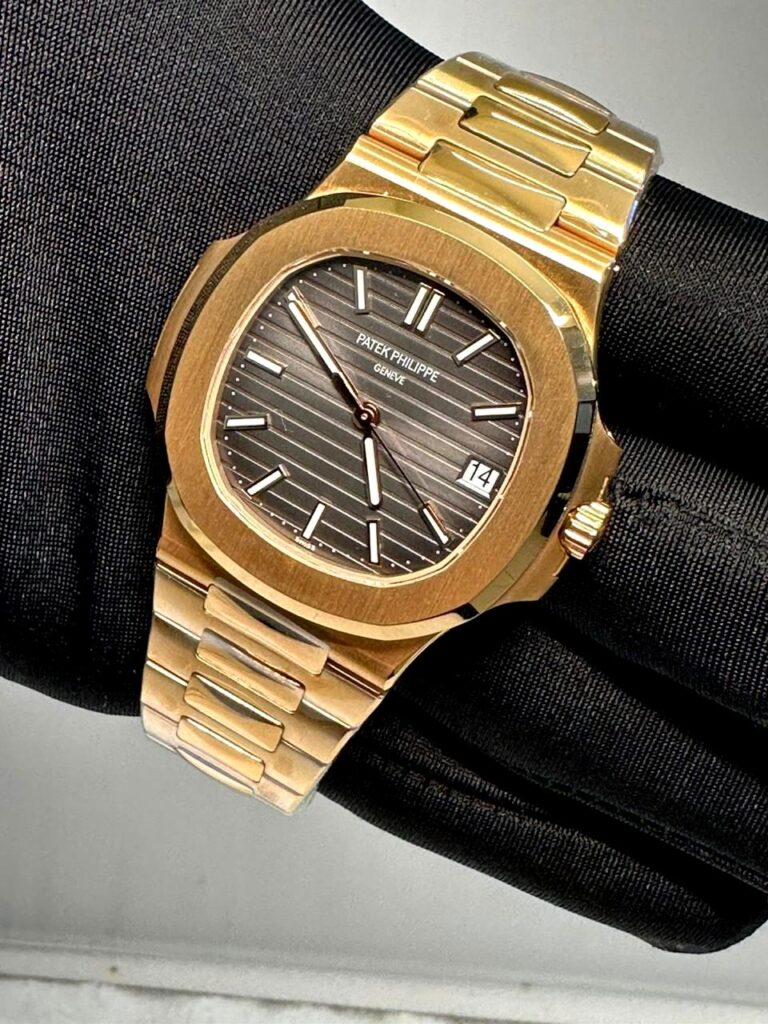 Patek Philippe Nautilus 5711R ROSE GOLD WITH BROWN LEATHER STRAP SUPER CLONE SLIM WATCH